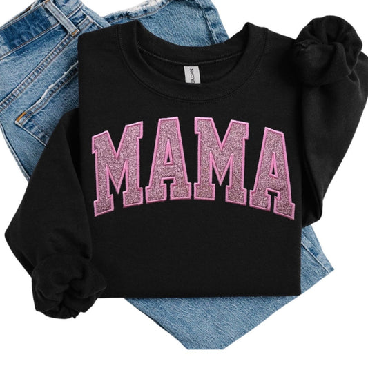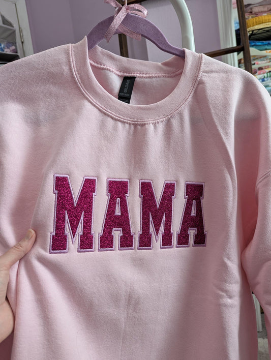 スパークリングママグリッターアップリケ刺繍スウェットシャツ、カスタムグリッタークルーネック、かわいいグリッターママ刺繍セーター、バレンタインはギフト