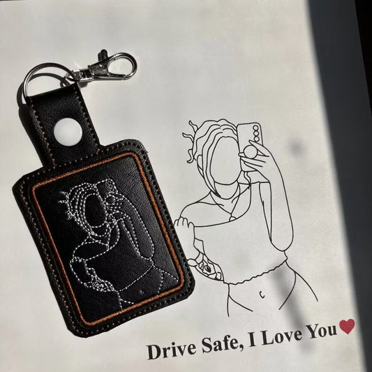 パーソナライズされたラインアート刺繍キーチェーン | ポートレートキーチェーン | パーソナライズされたギフト | カスタムキーチェーン | 刺繍キーチェーン