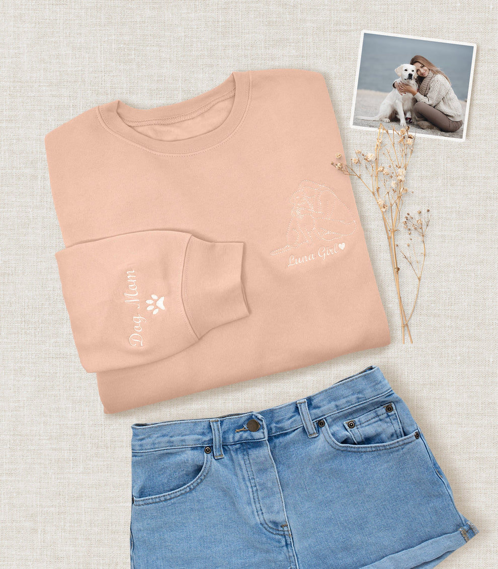 刺繍入りペットスウェットシャツ、刺繍入り犬の顔パーカー、犬のママの写真からカスタムスウェットシャツ、犬用パーカー
