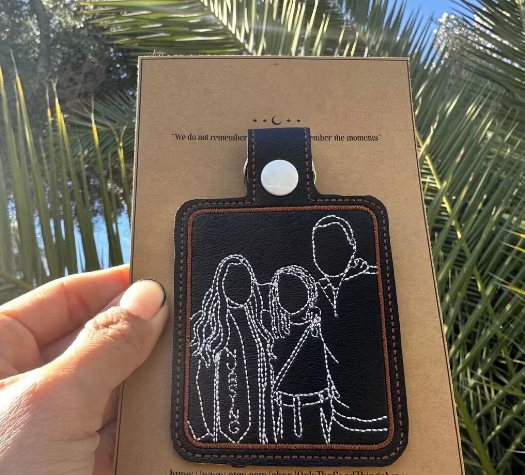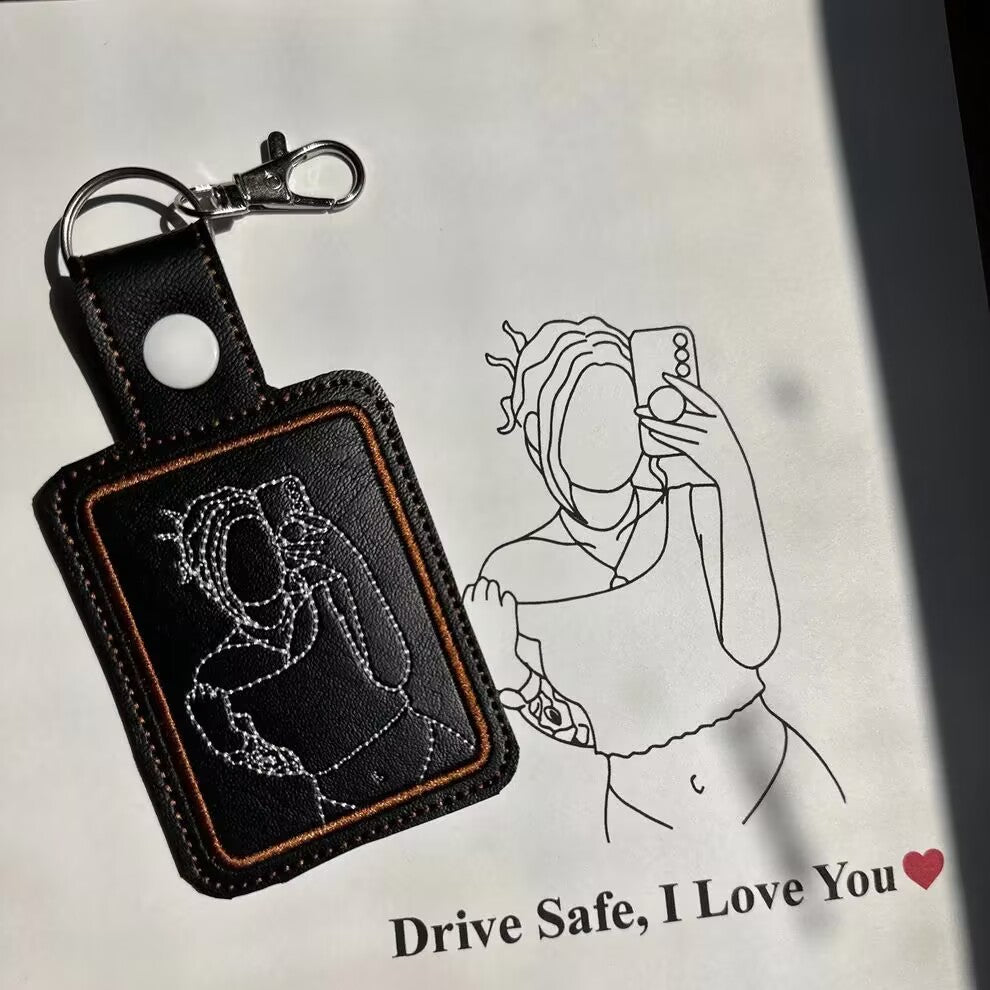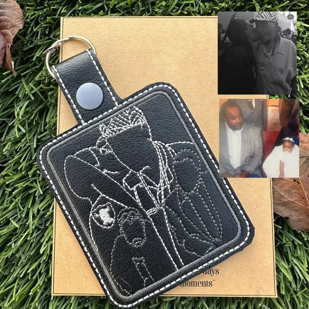 パーソナライズされたラインアート刺繍キーチェーン | ポートレートキーチェーン | パーソナライズされたギフト | カスタムキーチェーン | 刺繍キーチェーン ベストセラー